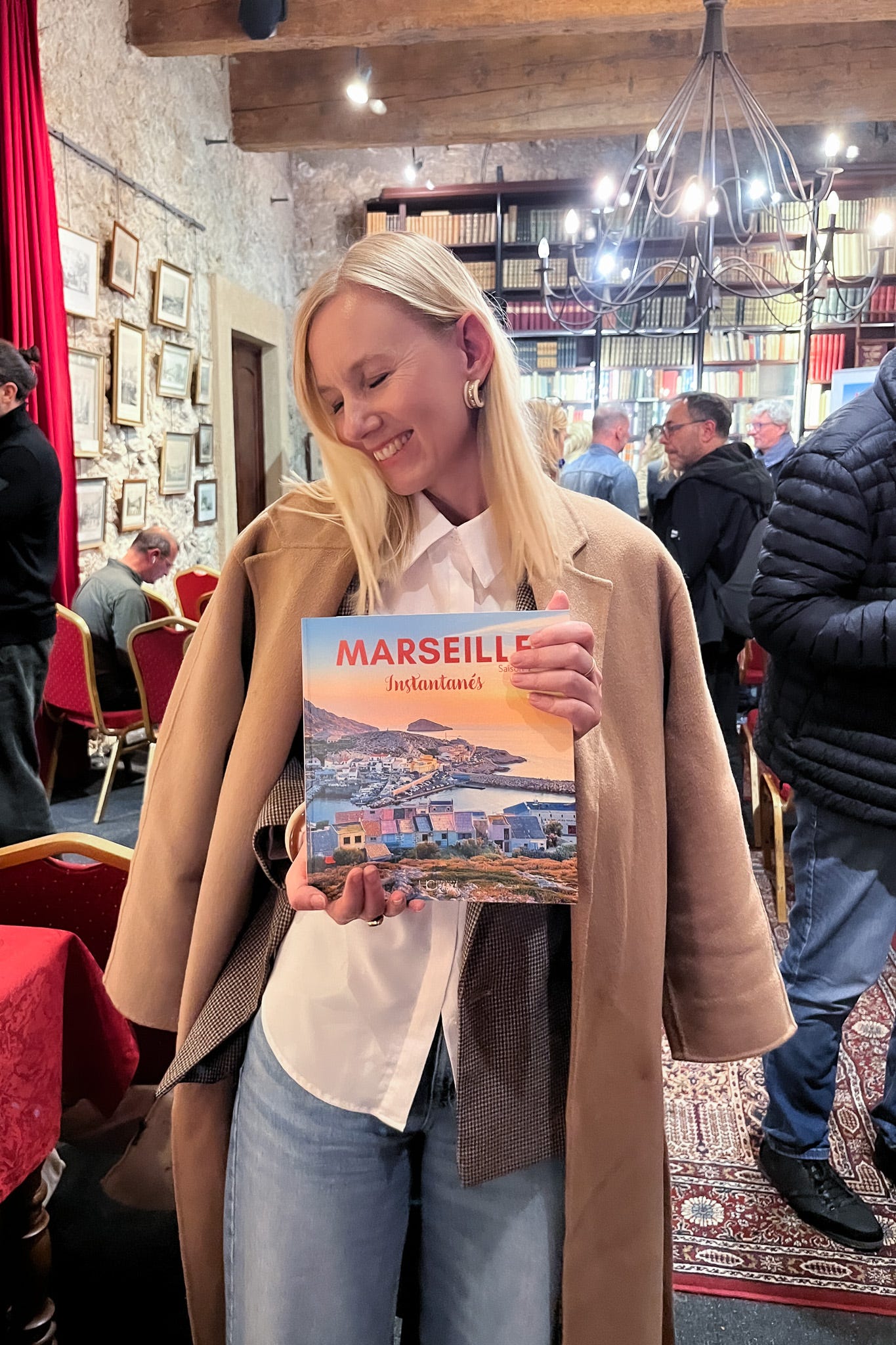 Un an plus tard, Café de la Banque à Marseille, nous voilà toutes les trois installées au chaud autour d’un café, pour préparer cette interview. Et j’ai à présent, dans mes archives de vie1, un portrait de moi tenant un livre dans lequel 4 de mes photographies sont publiées. Fou.